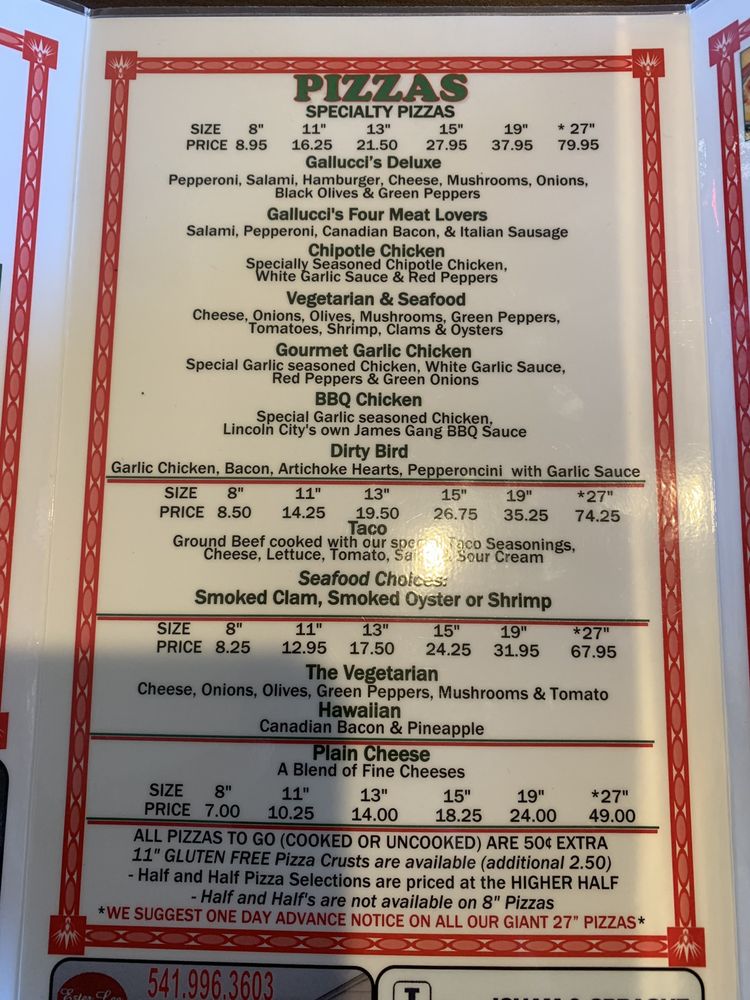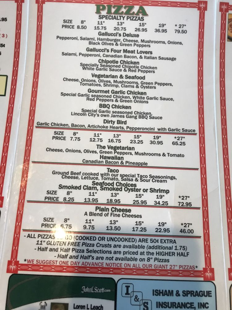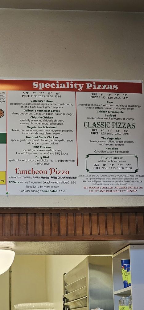 Gallucci's Pizzeria Menu